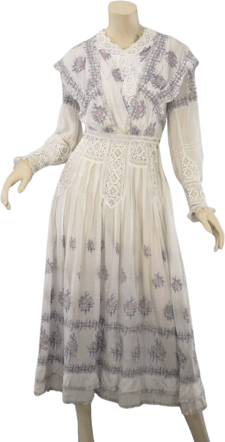 10s Rare Edwardian Teens Pink And Blue Embroidery Cheap Sale Explore