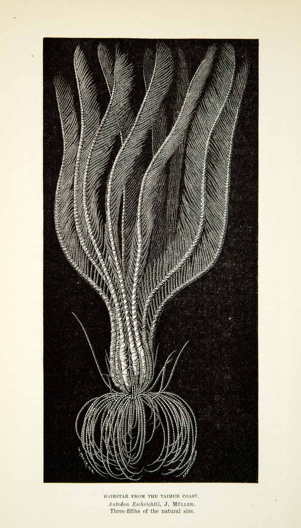 This is an original 1882 black and white in-text wood engraving of a “hairstar” marine animal that was found near the Taimur Coast.