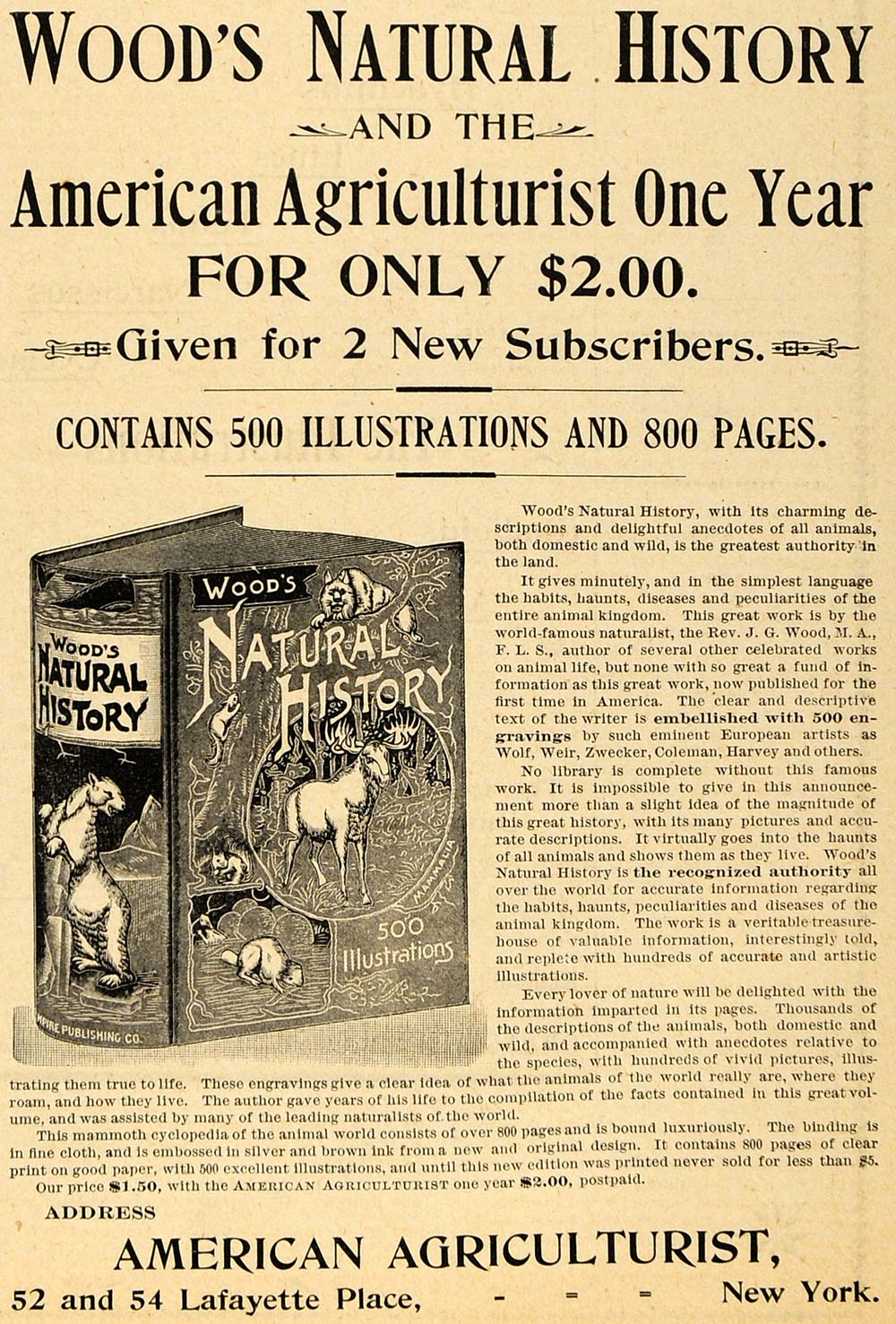 This is an original 1893 black and white print ad for the Wood’s Natural History book and illustrations, a subscriber gift from American Agriculturist.