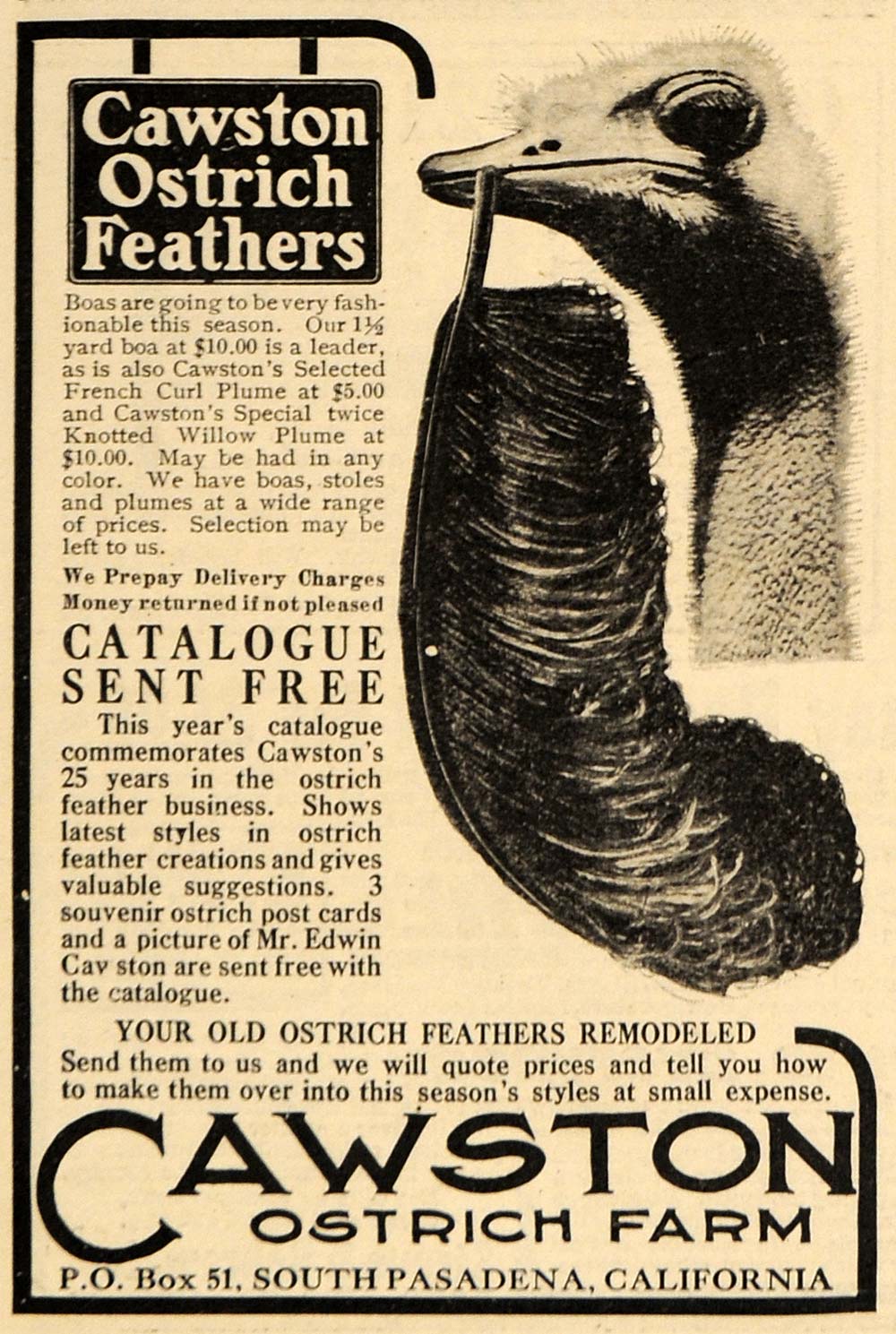 SKU: 1911 Ad Feather Boas French Plume Cawston Ostrich Farm - ORIGINAL EM1 Sale Shop-1425 Categories: ,