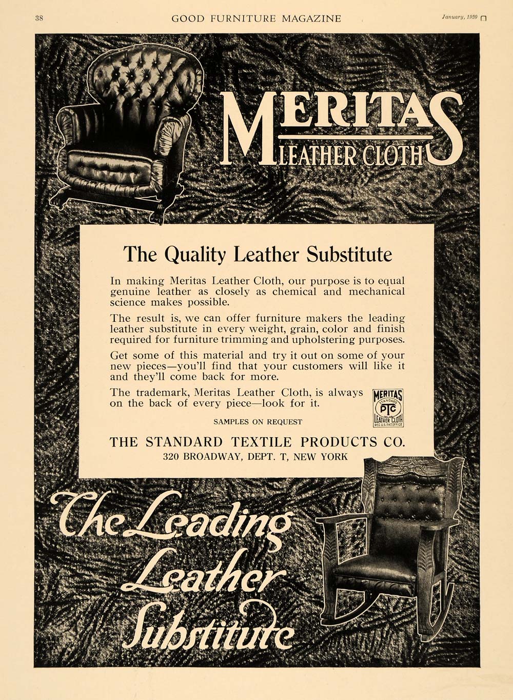 1920 Ad Fabric Textile Product New York Meritas Leather Cloth Broadway Chair GF1 The Best Store To Get