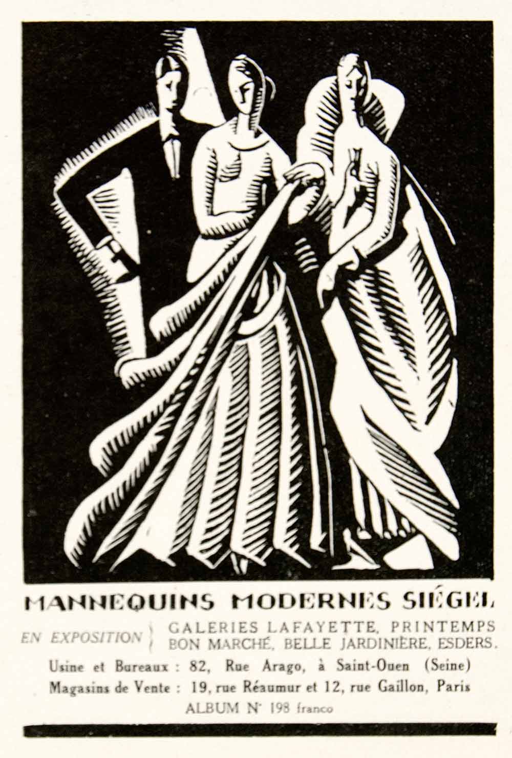 This is an original 1925 black and white print ad for Siégel mannequins.