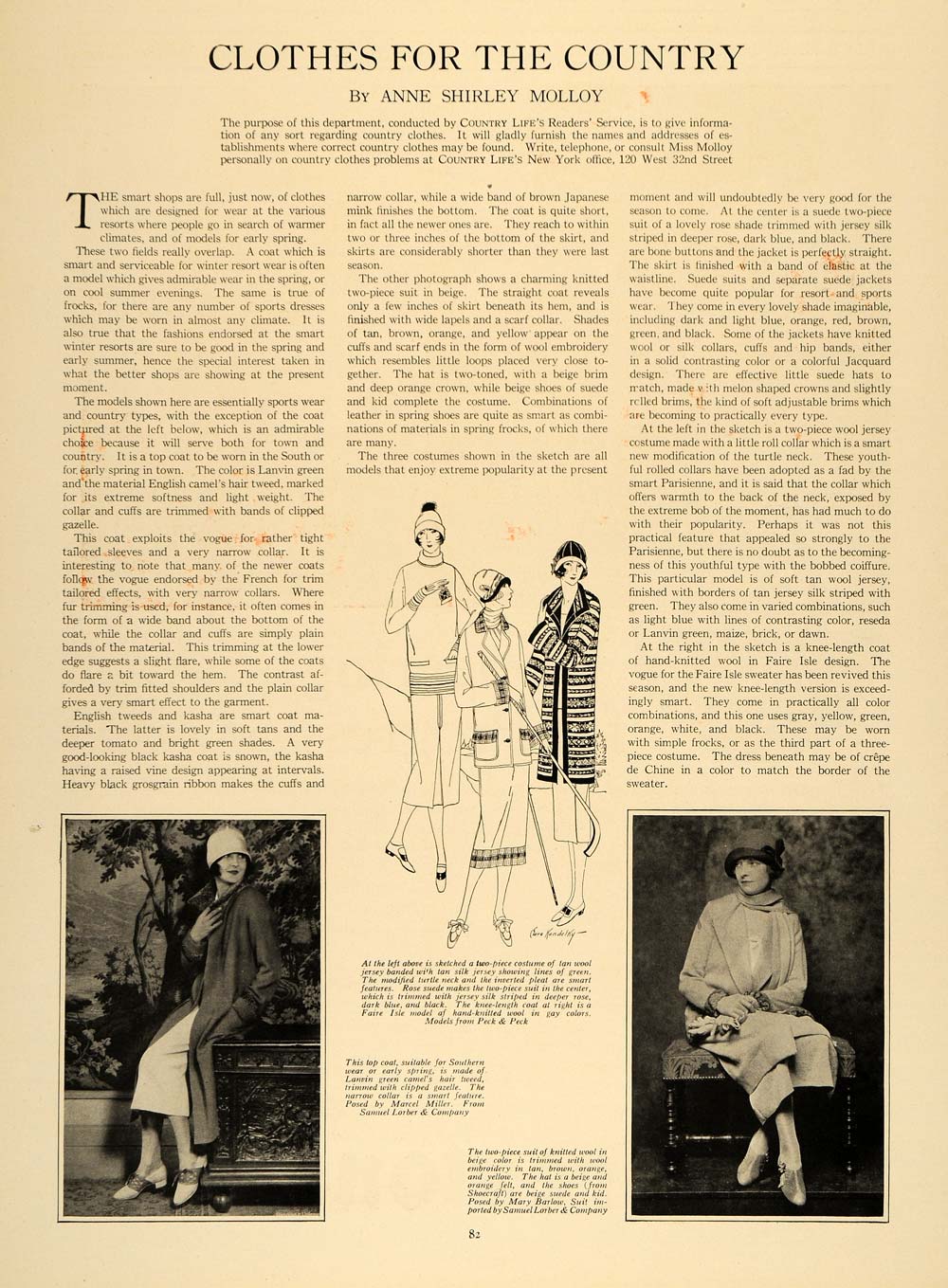 This is an original 1925 1 page article by Anne Shirley Molloy on proper fashion for the country woman.