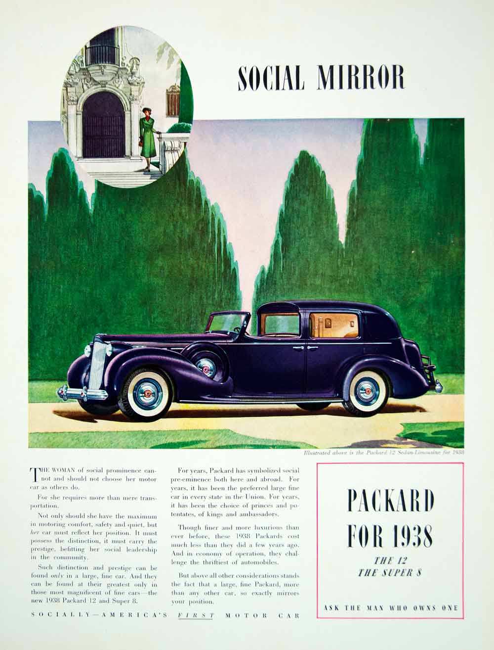 This is an original 1938 color print ad for the Packard 12 Sedan Limousine.