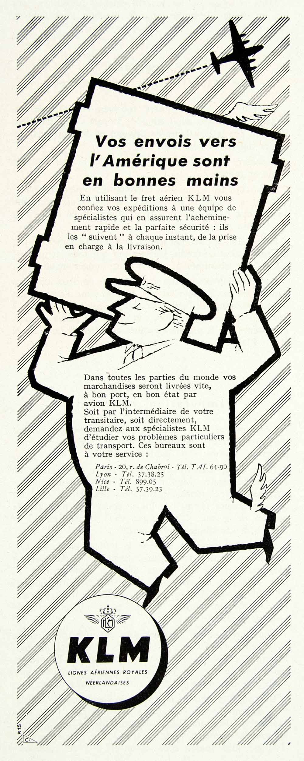 This is an original 1958 black and white print ad for KLM, the Royal Dutch Airlines.