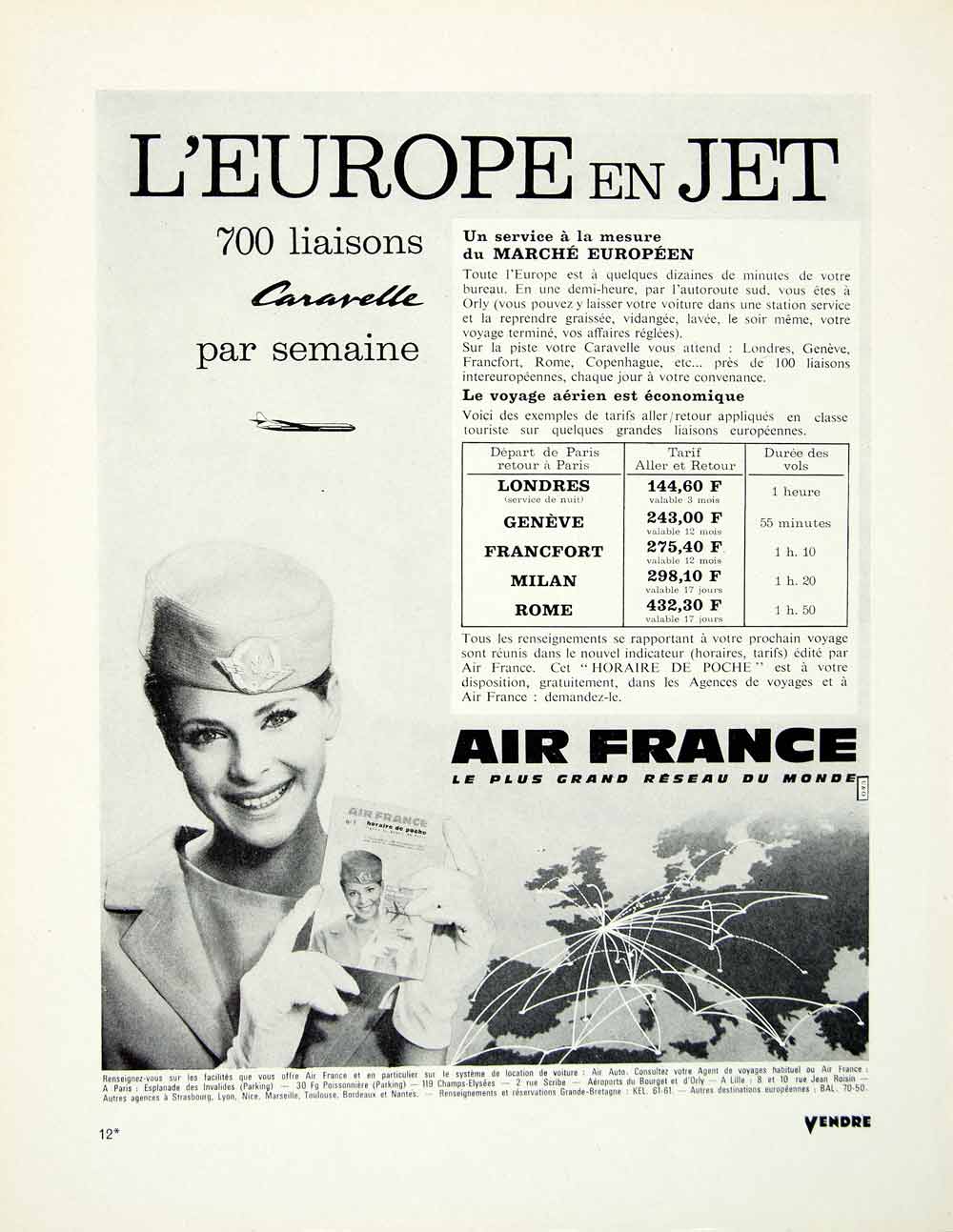 This is an original 1963 black and white French print ad for Air France.