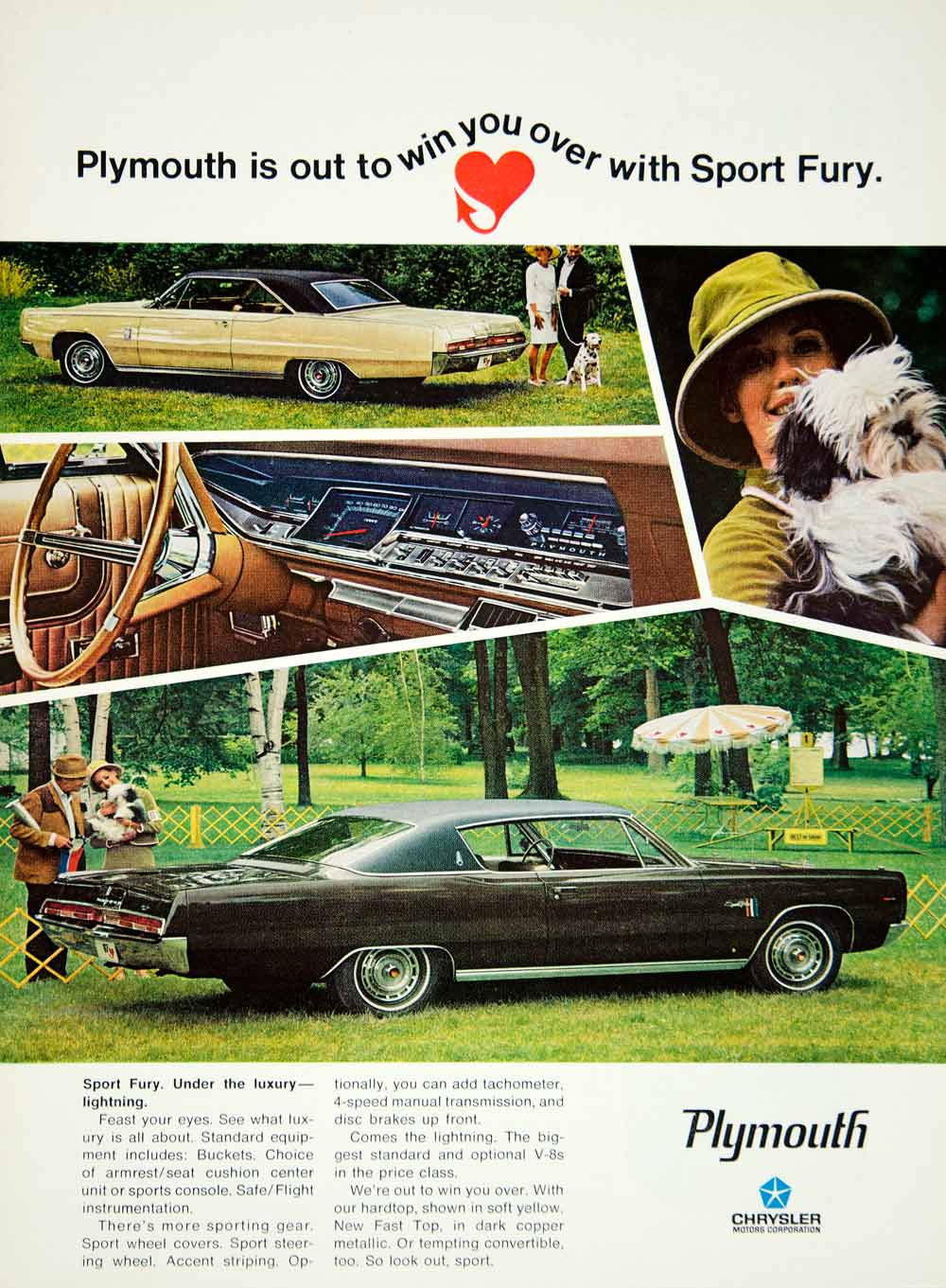 This is an original 1967 color print ad for the Chrysler Plymouth Sport Fury automobile.