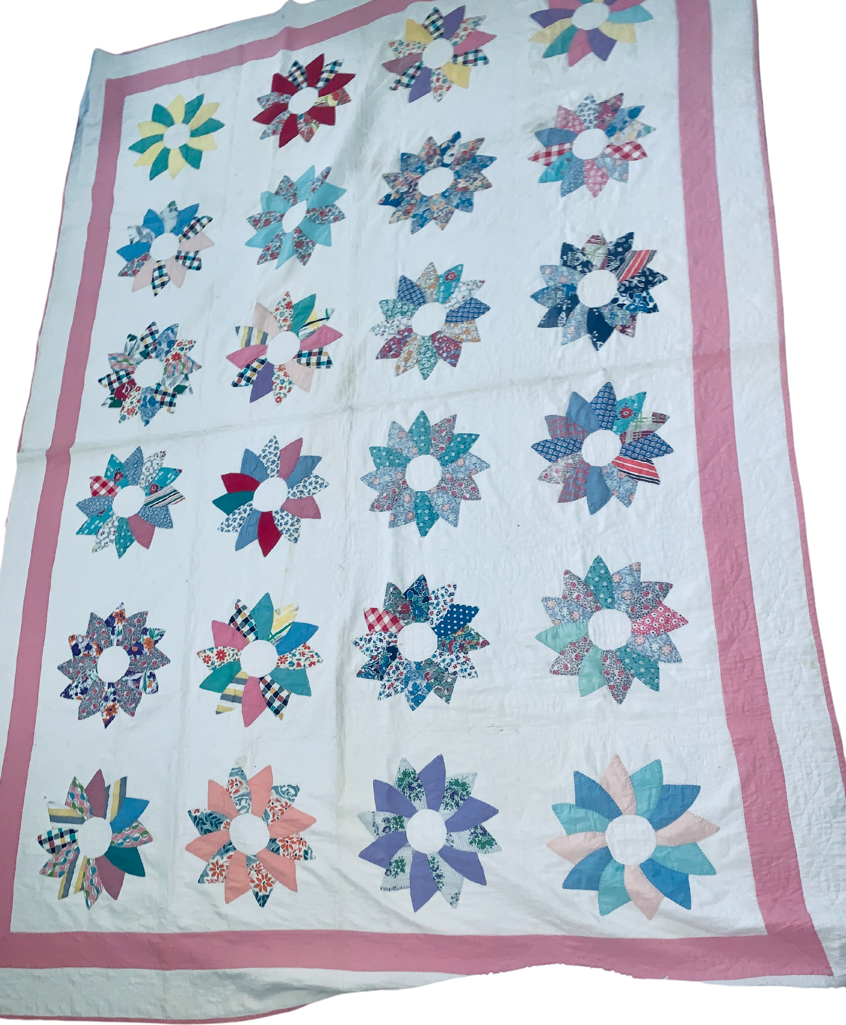amazing quilt in great condition. approx 97 x 68. may need cleaning (was on display folded so dust settled in crease)