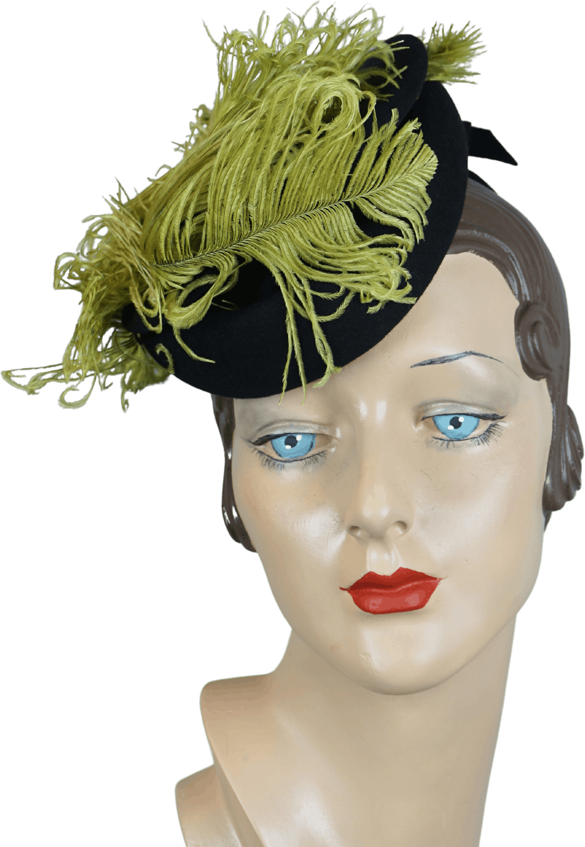 40’s Black Felt Tilt Hat with Lime Green Ostrich Feathers by Mccreery, New York Creations Outlet Cheap Pices