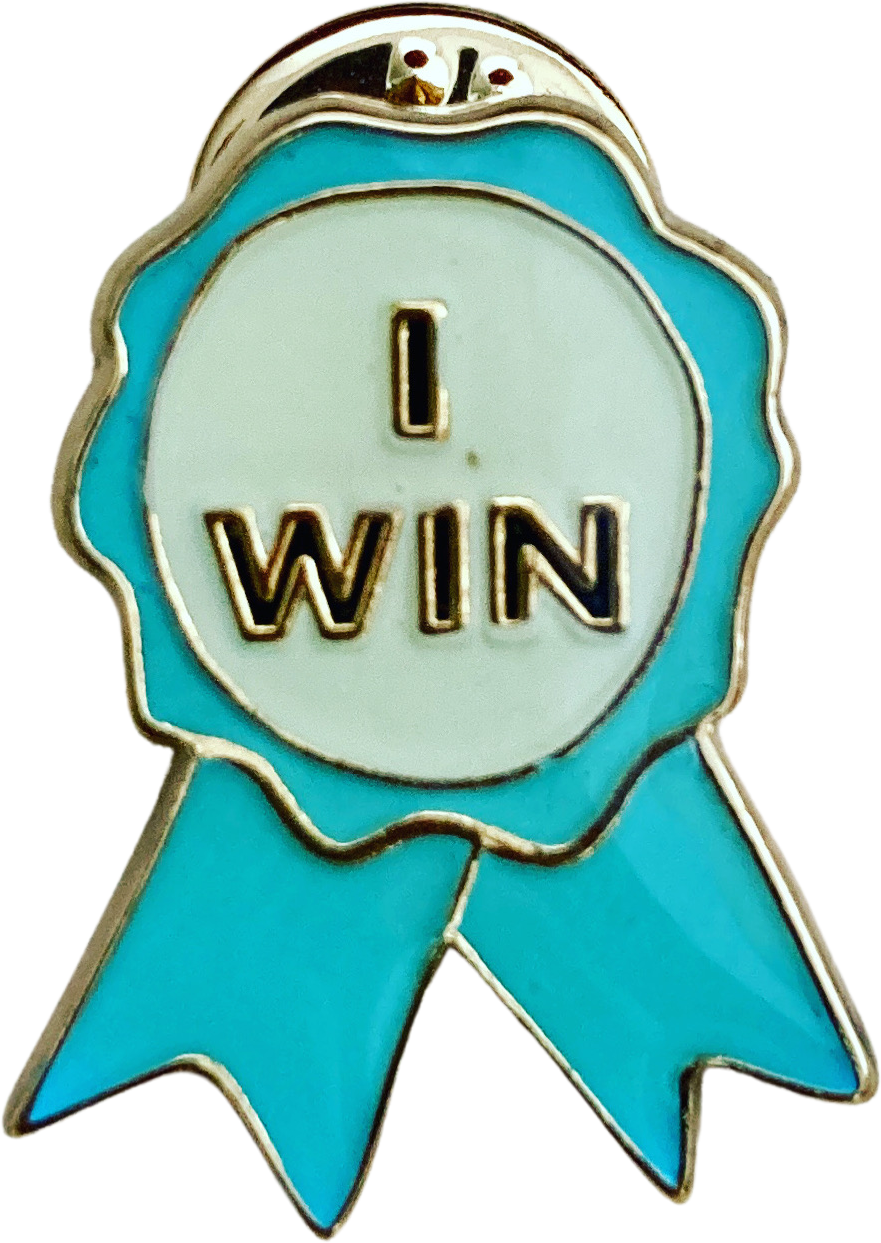 This vintage pin really made me laugh when I found it! Pat yourself on the back with this ‘I Win’ ribbon shaped pin back! It measures 1″ in length x 0.75″ width at its widest point. Great condition!