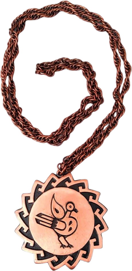 Road runner depicted within a tribal design pendant
