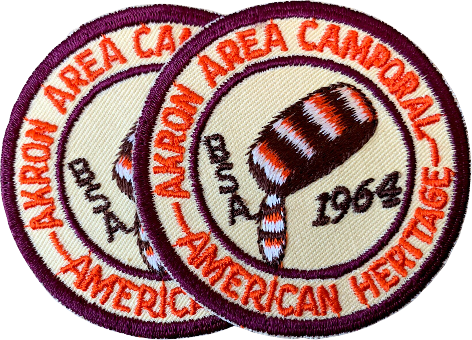 Pair of 1960s Boy Scouts of America patches – Akron Area Camporal – American Heritage.
