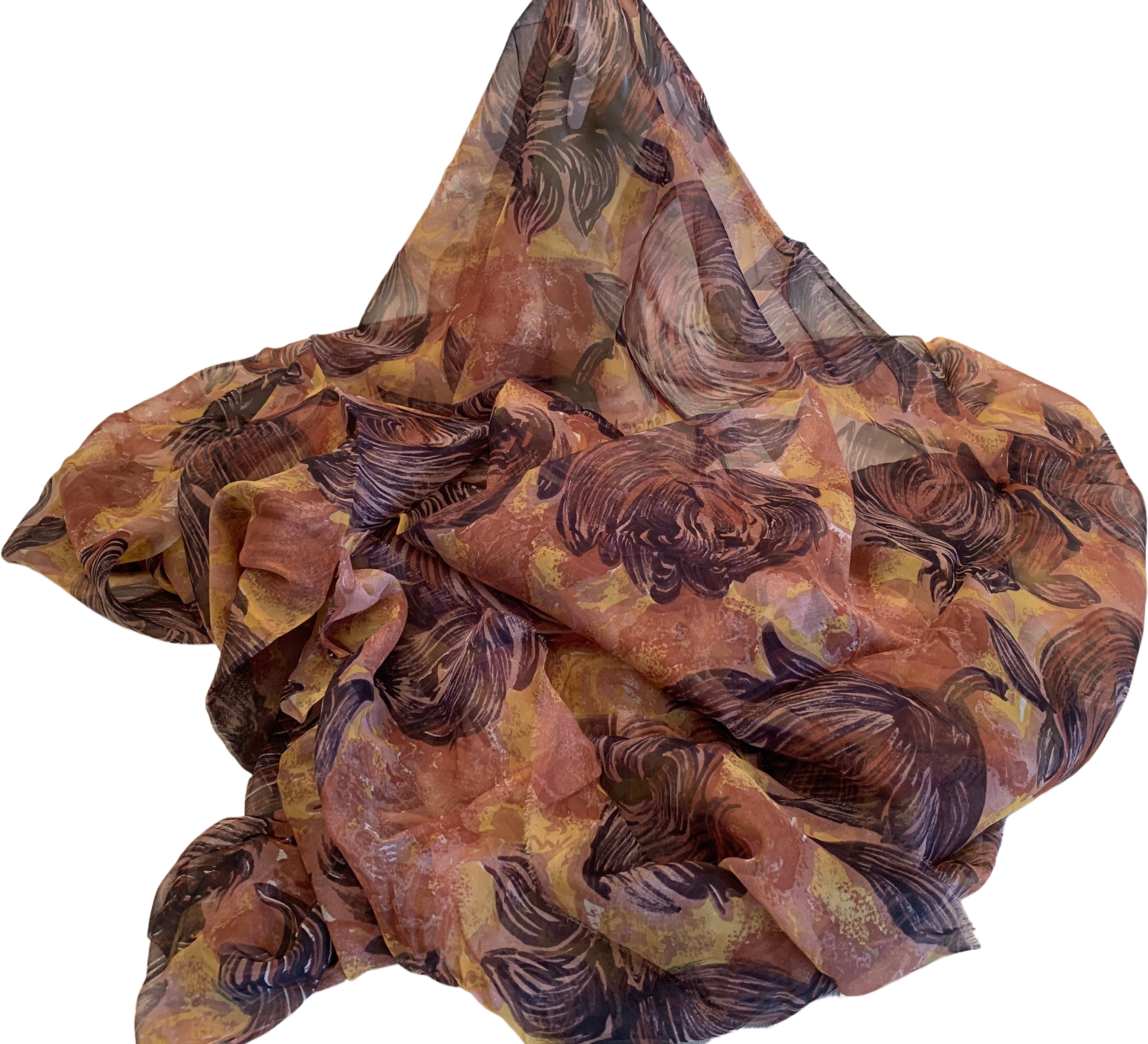 60s Floral Chrysanthemum Silk Chiffon Fabric Black Golds Floral Design Chiffon Silk Fabric, Silk Chiffon Material Cheap Sale Comfortable