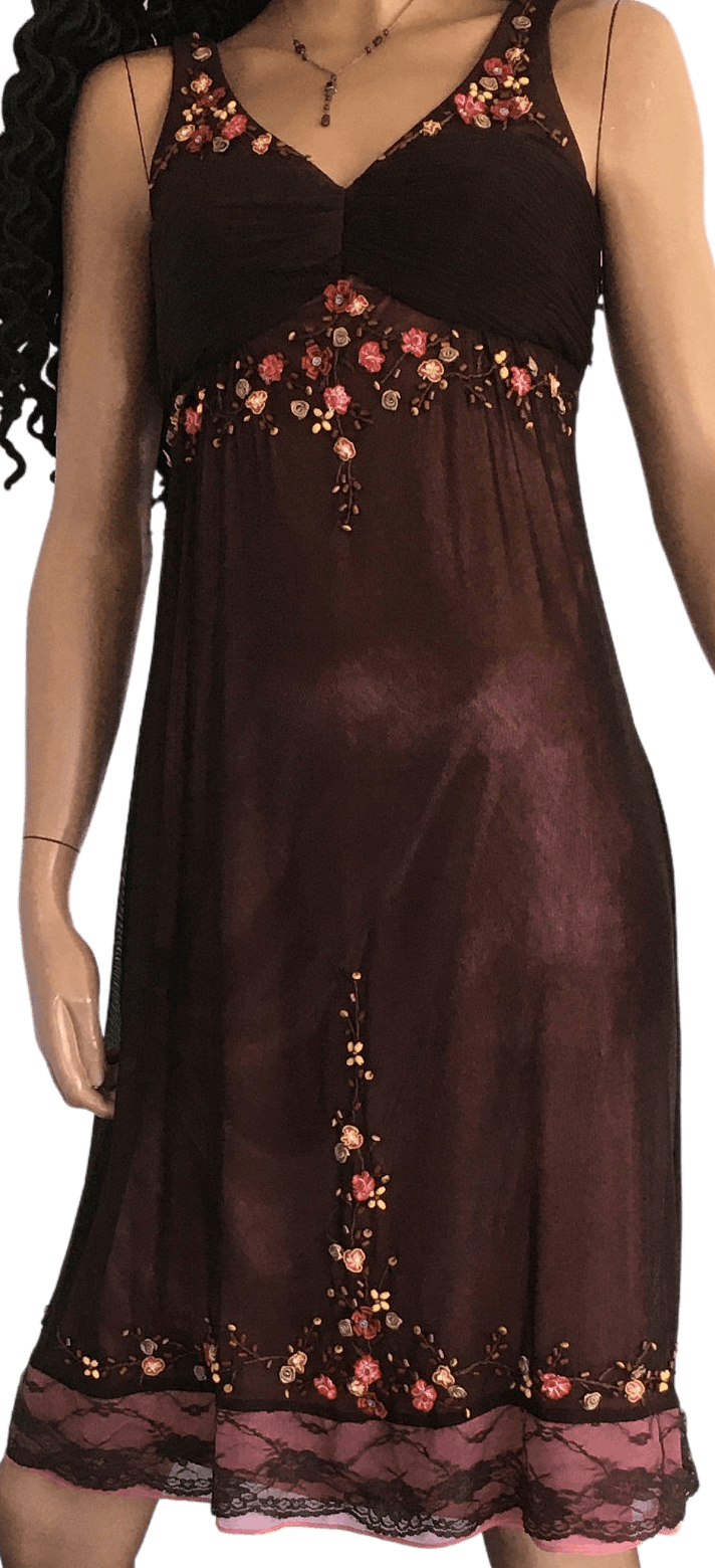 SKU: 90s Floral Appliqu Brown Silk Lace Trim Dress by Sue Wong With Mastercard Cheap Online-11920 Categories: ,