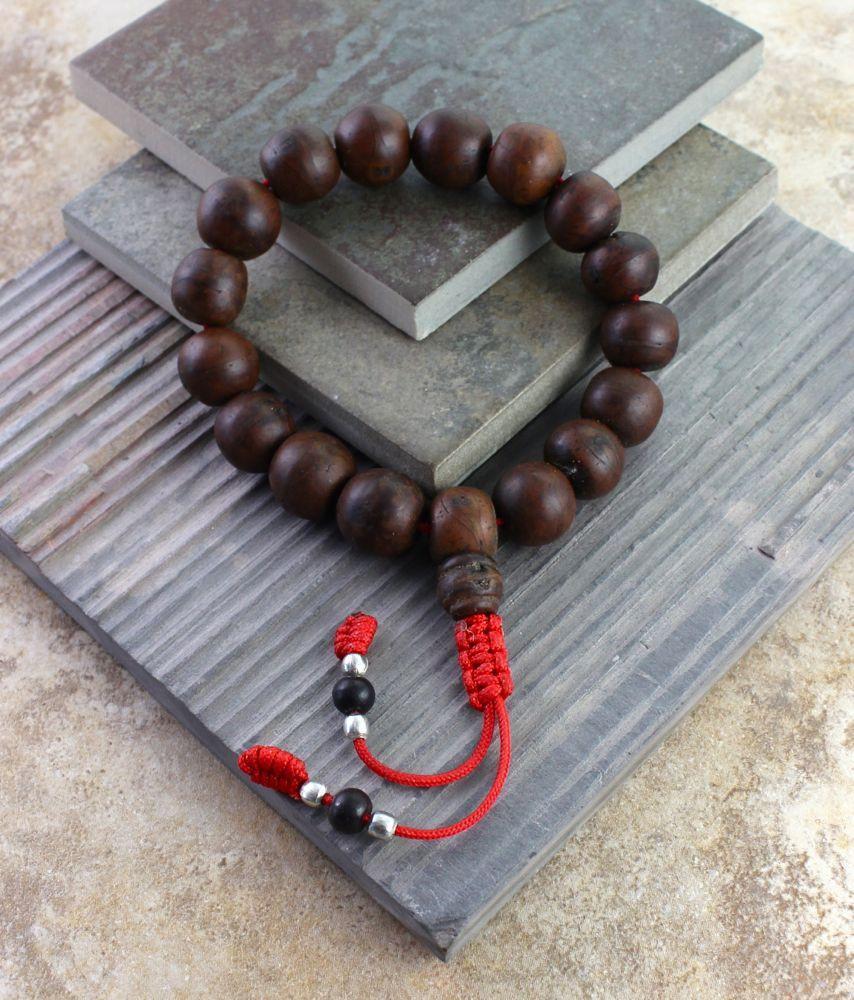 The large 14mm beads are the traditional material for Tibetan prayer beads. Totally renewable, the seeds of this relative of the rudraksha are gathered every year in India and strung in Kathmandu.