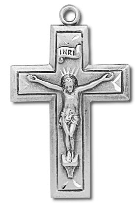 This is a great cross to hold while you pray due to its wide crossbars and flatter styling. With wide squared edges and a distinctive dark inner border, this rosary crucifix will look great on your rosary.