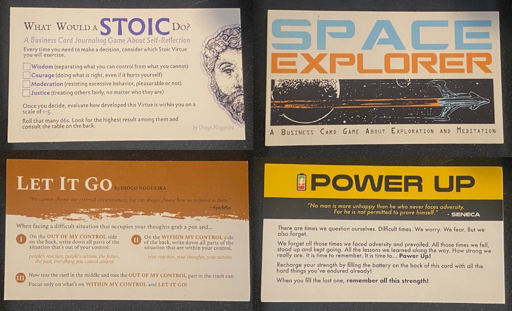 A Collection of Business Card Games Inspired by Stoicism
