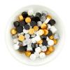 This Miraculous Medal rosary centerpiece is just delightfully designed. The border has a scalloped edge and is accented by pretty beads. The center contains an image of Mary and the border the Miraculous prayer.