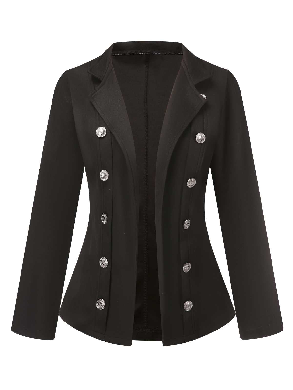 Black 1950s Silver Buttons Solid Coat Visa Payment Cheap Pice