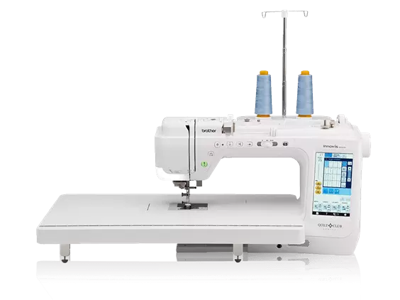 Sew and quilt faster – up to 1,050 stitches per minute, while enjoying luxuries like Automatic Needle Threading and bobbin winding while sewing. The BQ2450 Quilters Bundle includes a wide table for large projects, an open toe foot for MuVit for expanded visibility of the needle area, a stitch in the ditch dual feed foot for more efficient feed movement, and a two-spool thread stand, which can hold up to two king thread spools.