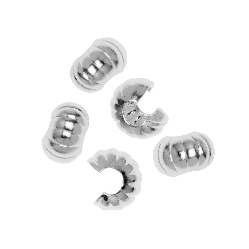 Crimp Bead Covers, Fluted Design 4mm, Silver Plated (50 Pieces) 100% Original