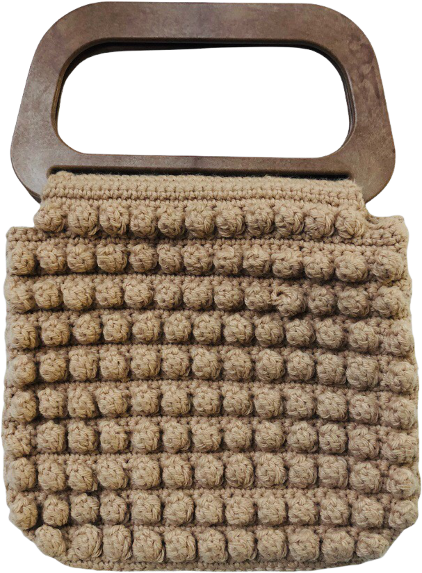 Vintage 1970’s Boho Crocheted Wood Handle Handbag Purse