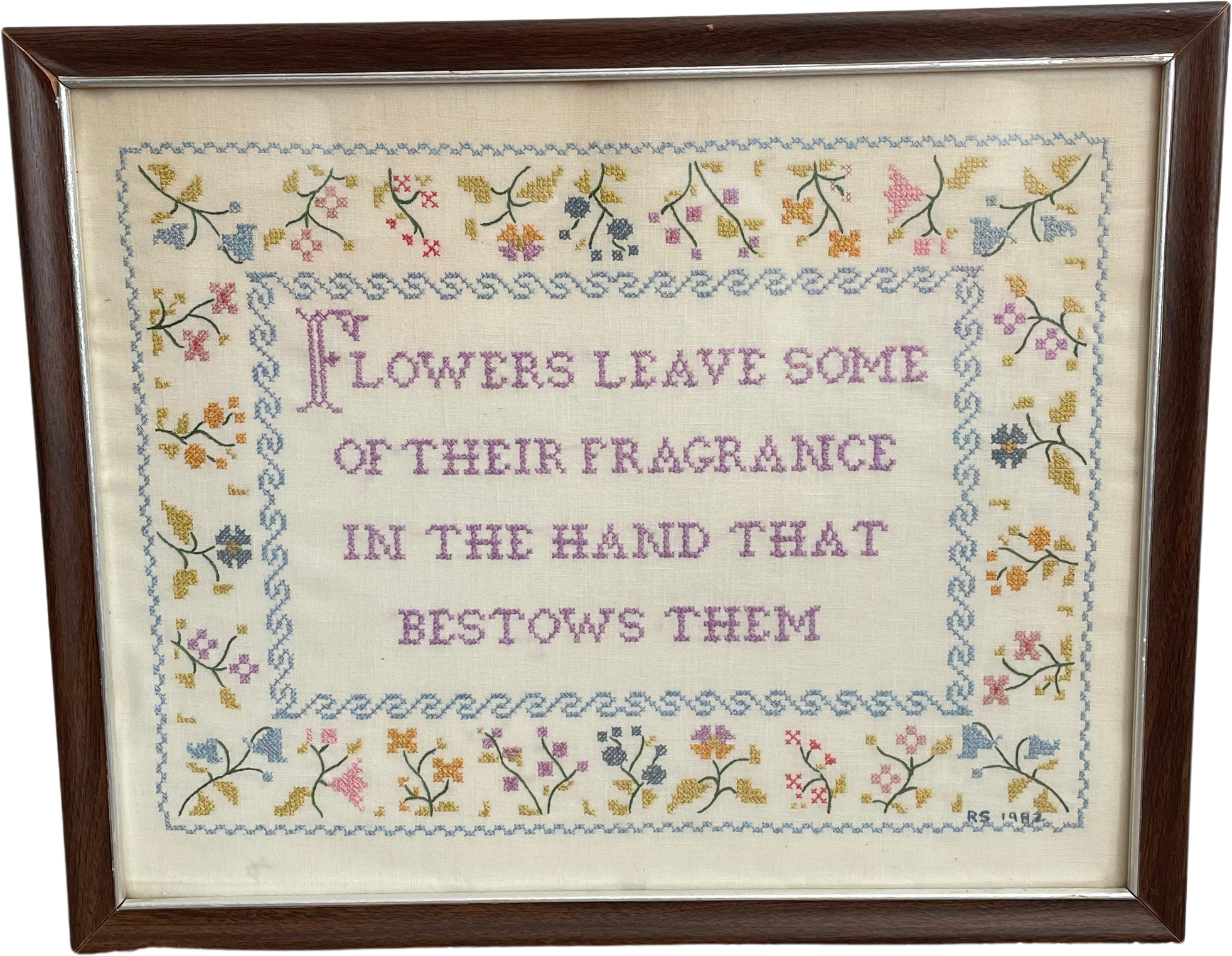 Framed Crewel Embroidery Flowers Wall Art Outlet Good Selling