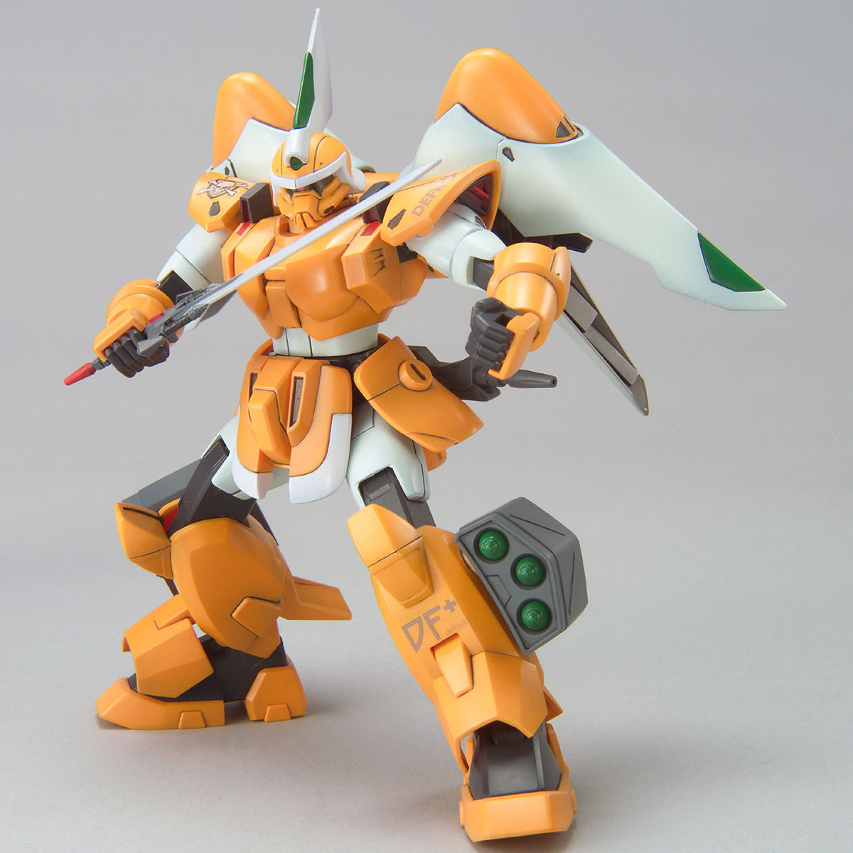 A customized GINN used by Miguel Aiman, it features an orange paint job, a personal crest (a human skull above two long bones) as well as improved sensors and thrusters, resulting in a 20% increase in performance. Weapons wise, Miguel’s GINN has been shown to use the heavy blade, machine gun, leg-mounted “Pardus” missile launchers and a customized shield for extra defense.