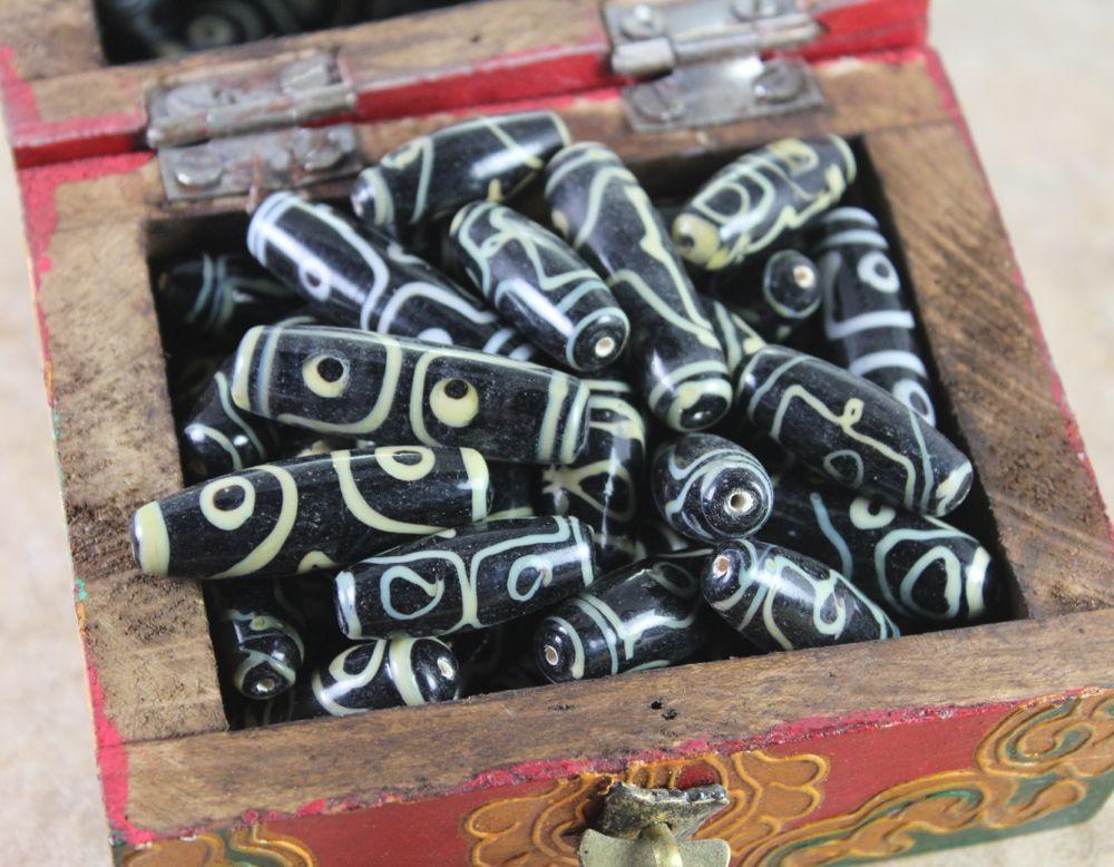 These glass dzi beads are perfect to string on a necklace or mala without paying the price of true agate. Priced innavidually. Image is for example of variety.