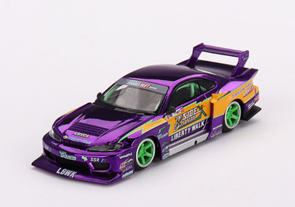 Nissan S15 SILVIA LB-Super Silhouette #555 2022 Formula Drift Japan Chrome Purple Mijo Exclusives Mini GT 1/64 scale MGT00576-MJ