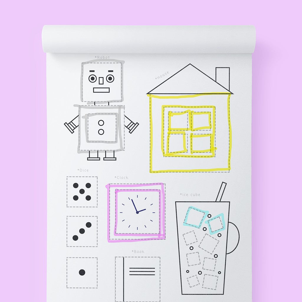 Some of the square on this worksheet are just plain square, and other square appear as part of familiar objects. Kids completing this worksheet practice identifying geometric shapes and recognizing shapes of common objects that may appear in their environment.