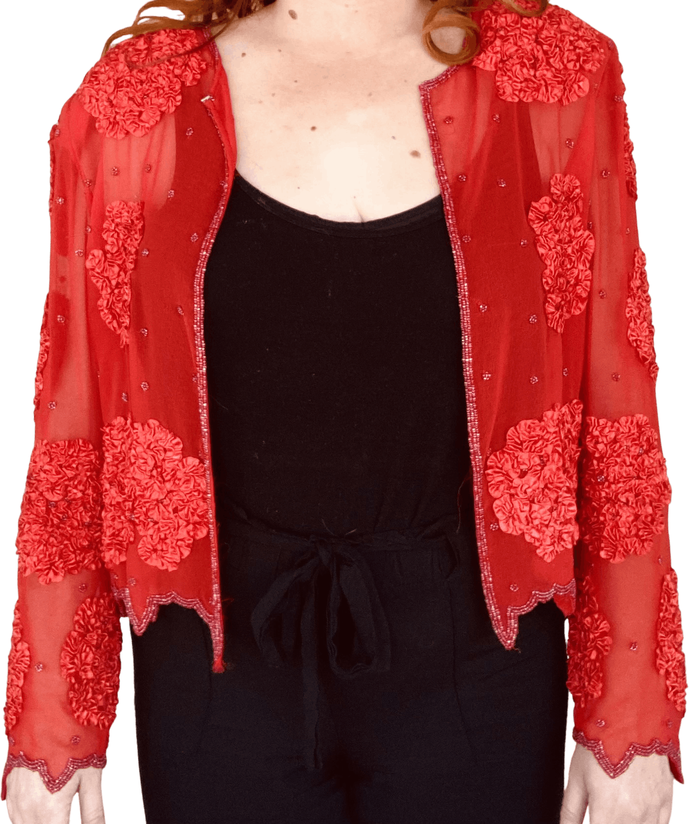 SKU: Sheer Red Beaded Floral Appliqu Blouse by Krishma Countdown Package Cheap Pice-7529
