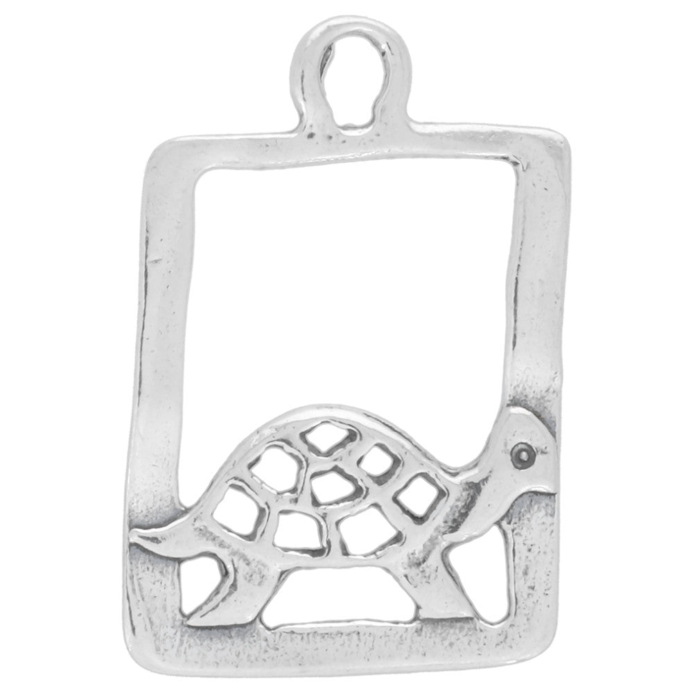 Sterling Silver Charm, Rectangle with Turtle 20×13.5mm, 1 Piece Free Shipping Marketable