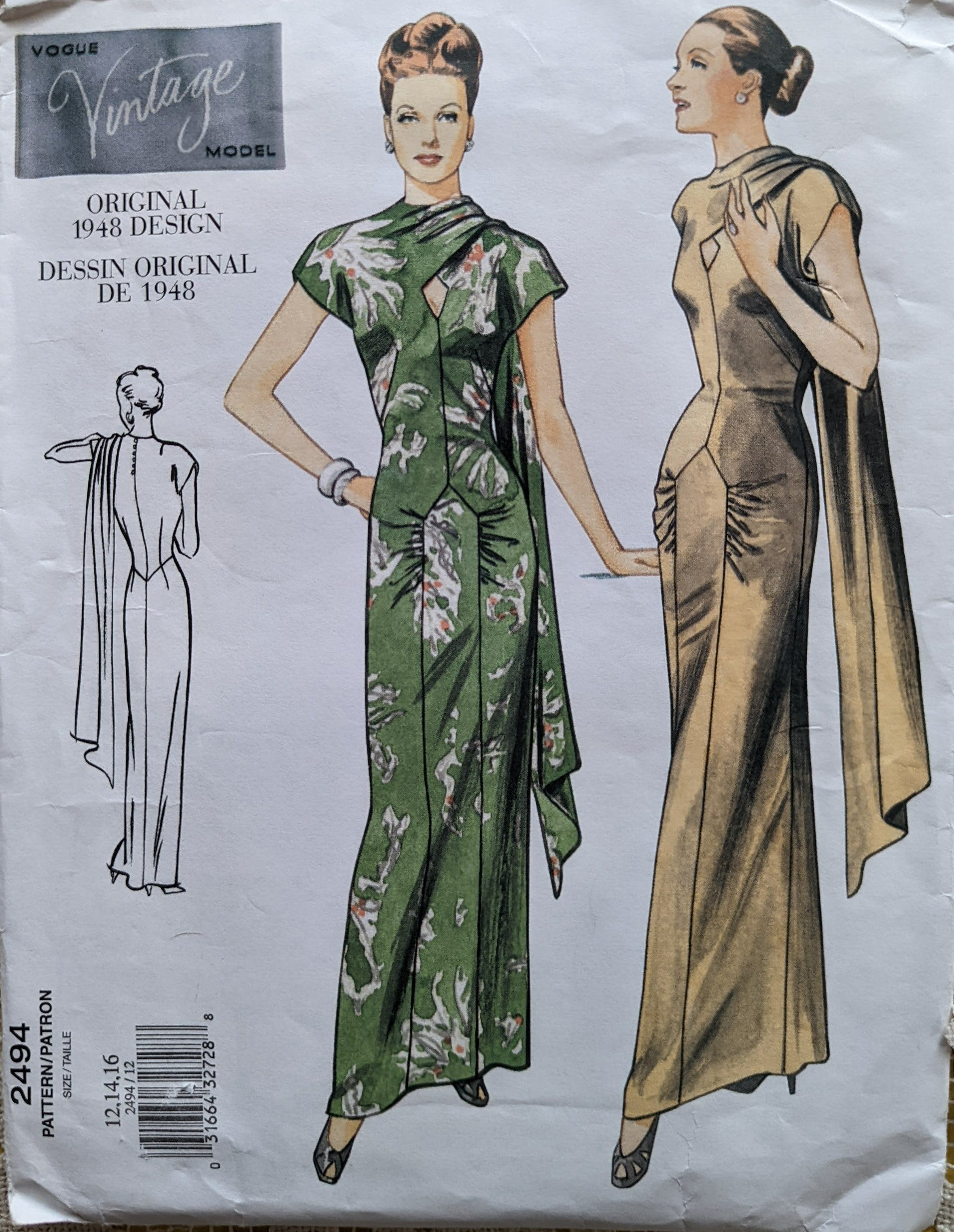 Vintage 1948 Original Design | Sewing Pattern 2494 Reproduction by Vogue For Sale Finishline
