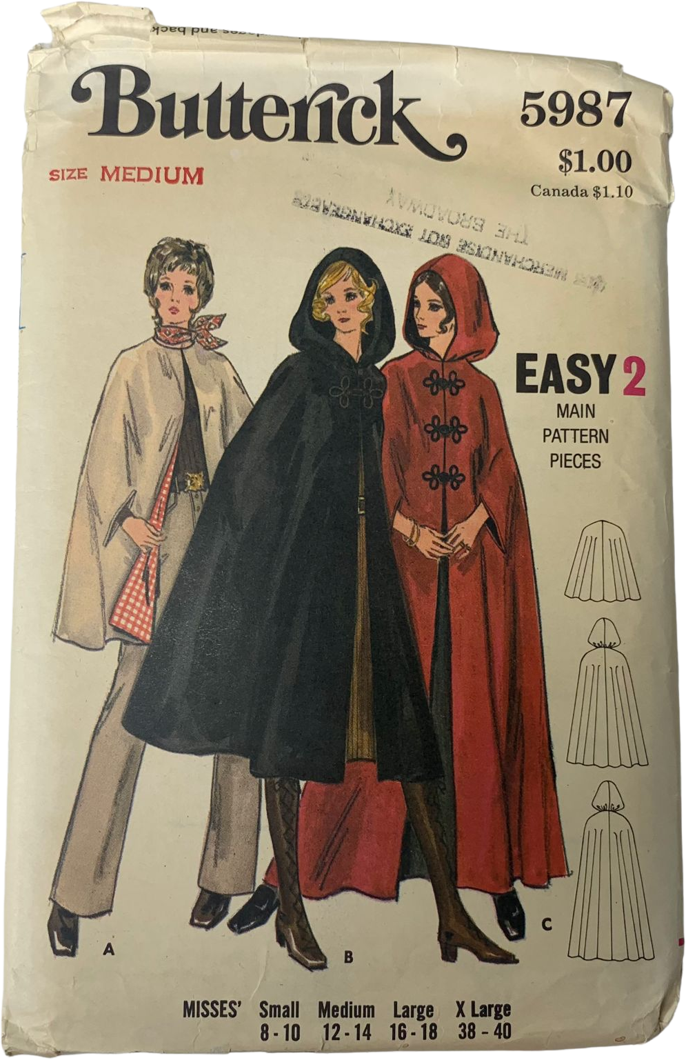 SKU: Vintage 70s Butterick 5987 Pattern Misses 8-40 Cape Hooded 3 Lengths Uncut by Butterick Clearance Online-7310 Categories: ,