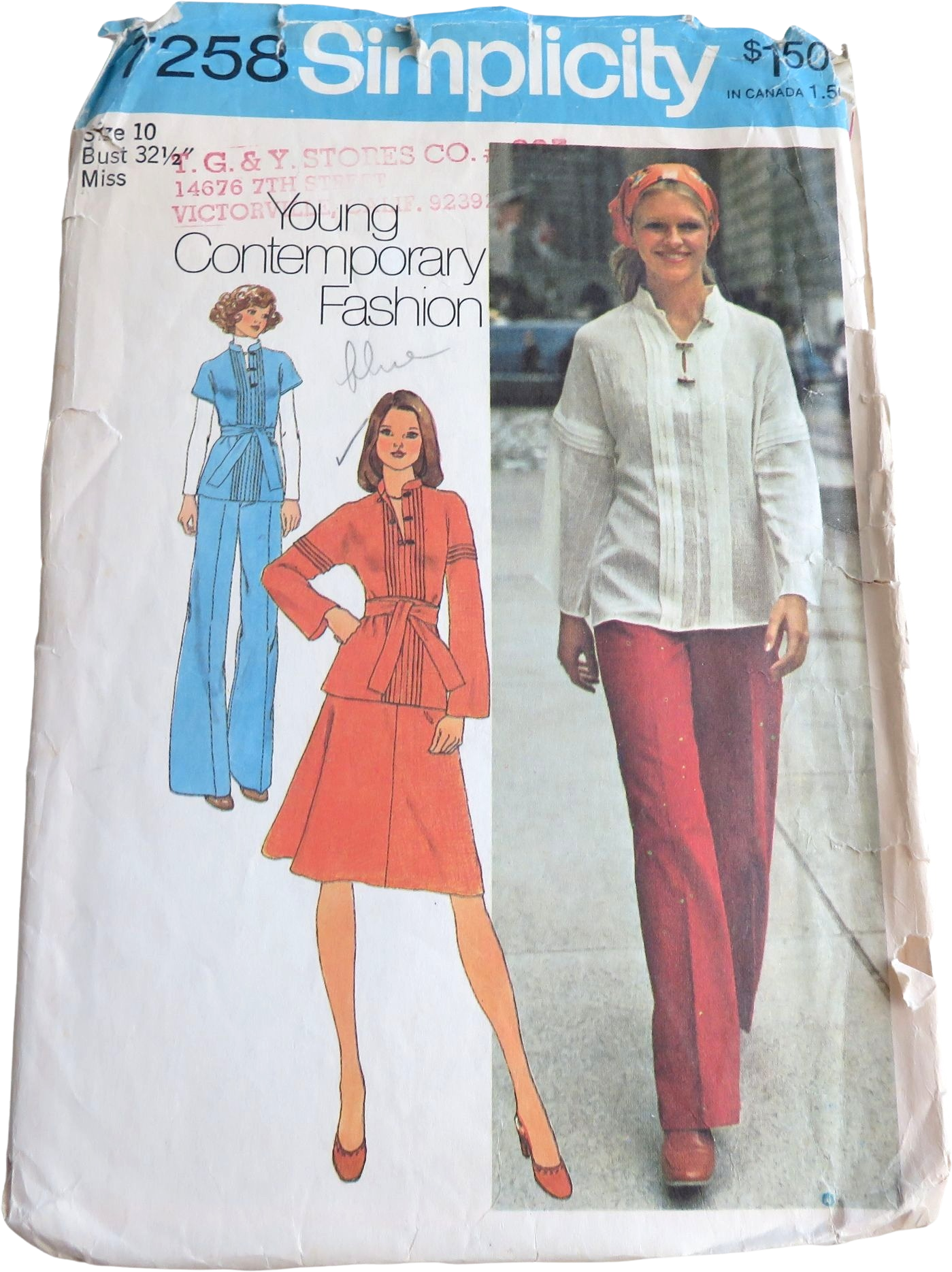 Vintage 1975 Simplicity Young Contemporary Fashion Pattern 7258