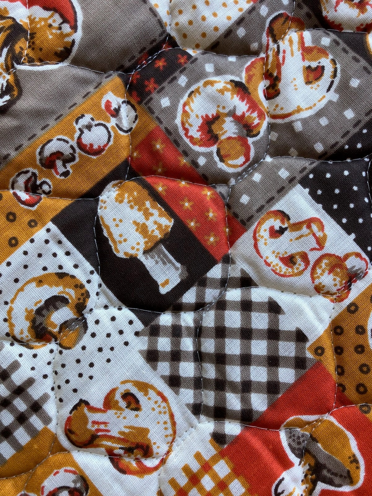 SKU: Vintage 70s Mushroom Quilted Fabric 4. 51 Yds Cheap Buy-11948 Category:
