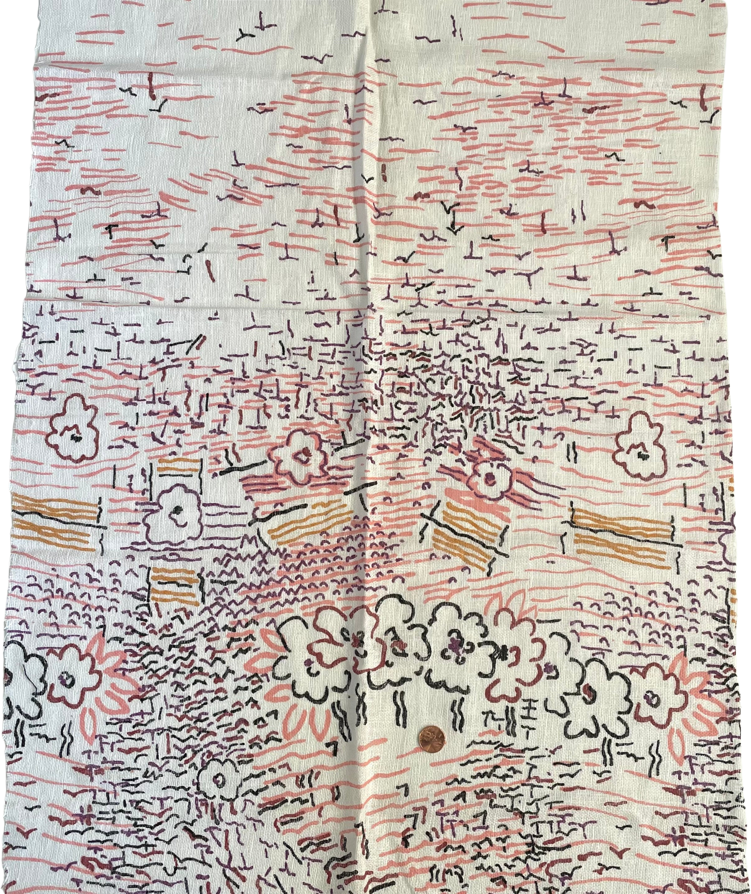 Vintage fabric remnant, abstract landscape, mod, 60s 70s 80s, floral, Rust cream pink, purple black, Printsiples Fabric Corp, retro tapestry piece, slubbed remnant