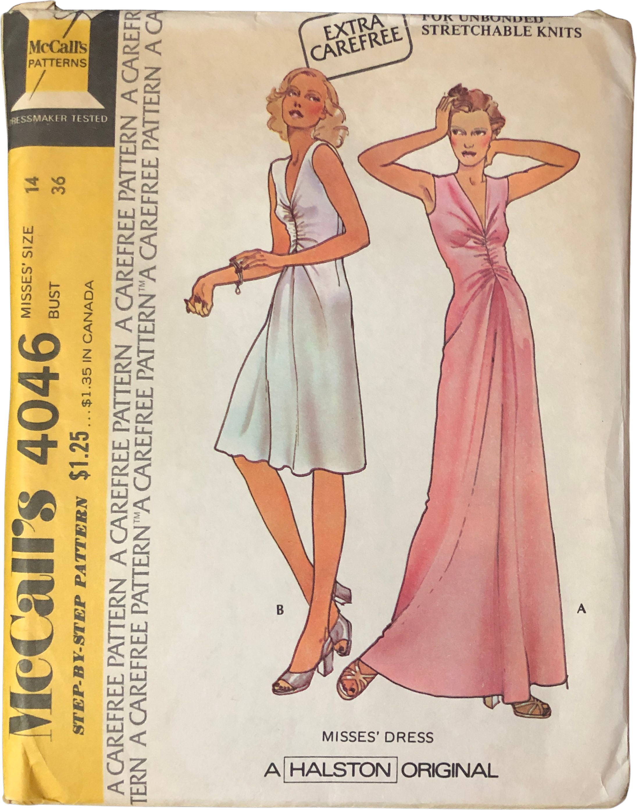 Vintage McCalls 4046 Halston Original Dress Pattern, 1974 Uncut Pattern for 36″ Bust