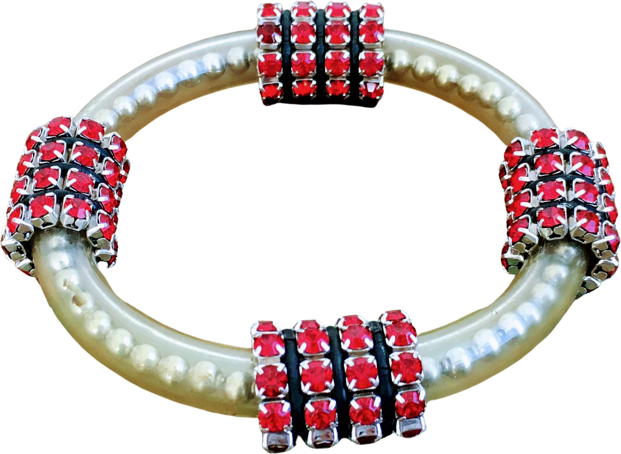 Vintage Industrial Red Rhinestone Bracelet Plastic Tubing Silvertone Beads Pay With Visa