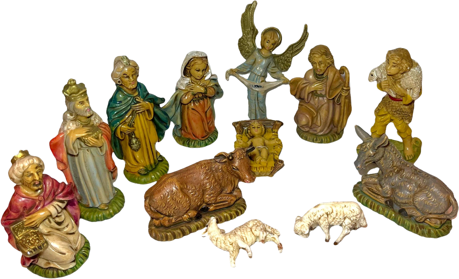 12 pieces total. Angel does not stand on its own. It is leaning against a wall in my picture.