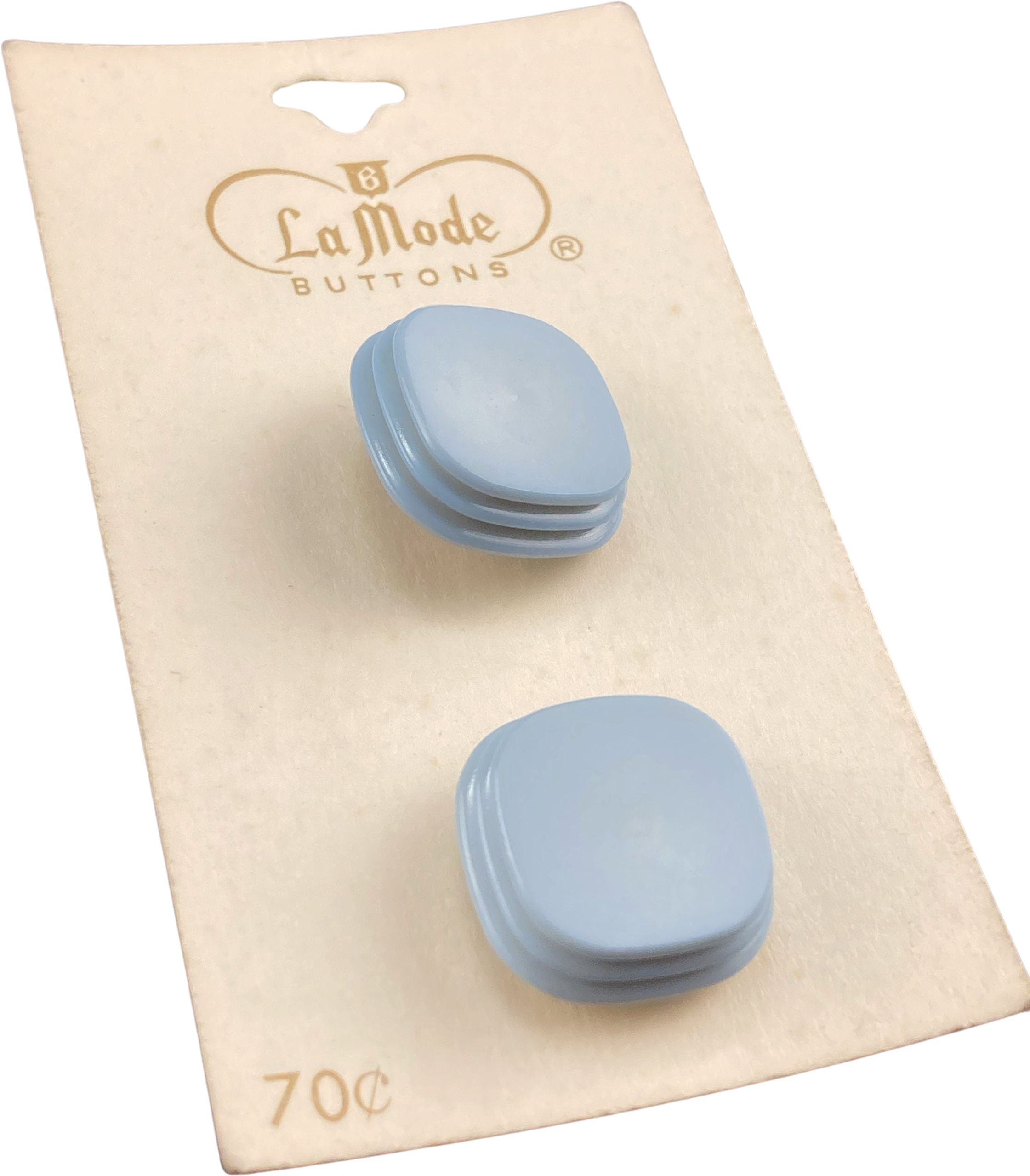 – Features a set of light blue/periwinkle blue square beveled edge buttons!