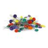 They are a great alternative to pins especially when working with thicker fabrics, multiple layers or if you want to avoid pinholes in more delicate fabrics, vinyls, or leathers. The bright colors make them easy to find if dropped on the floor.